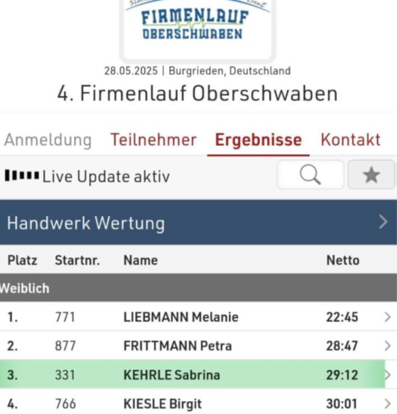 Sabrina Kehrle vom PRESTLE-Team belegte einen hervorragenden 3. Platz bei den Handwerker-Läuferinnen, herzlichen Glückwunsch dazu!
