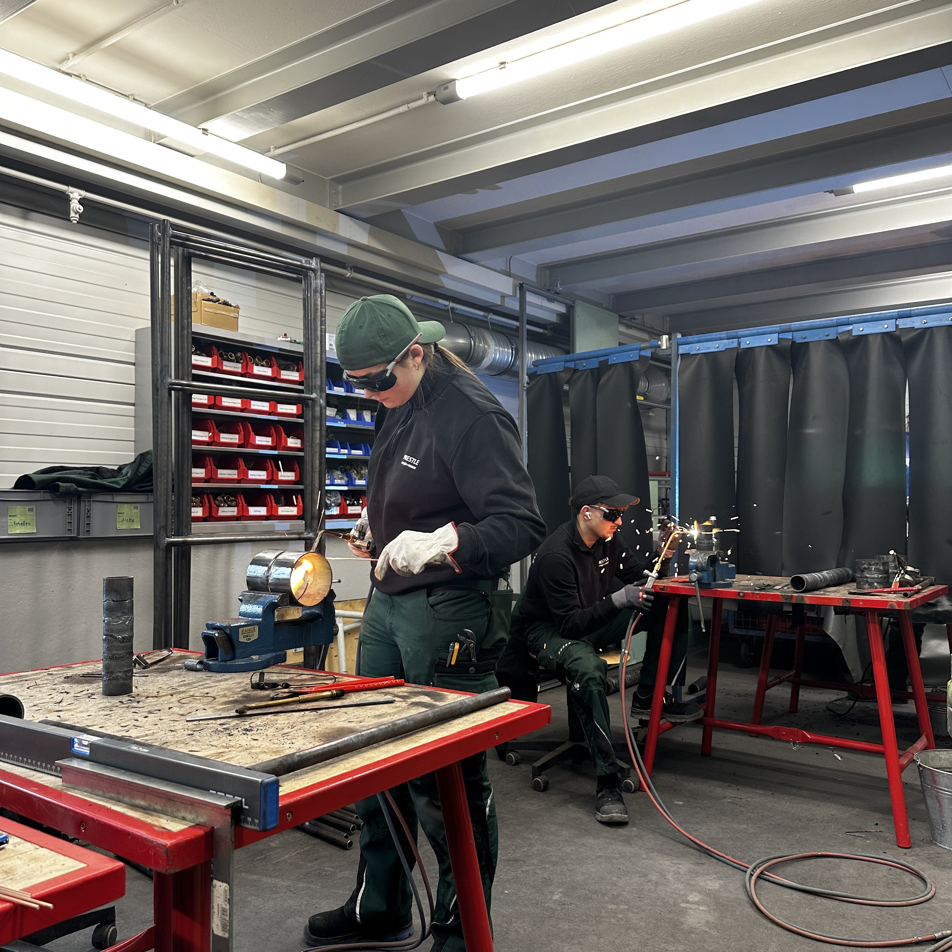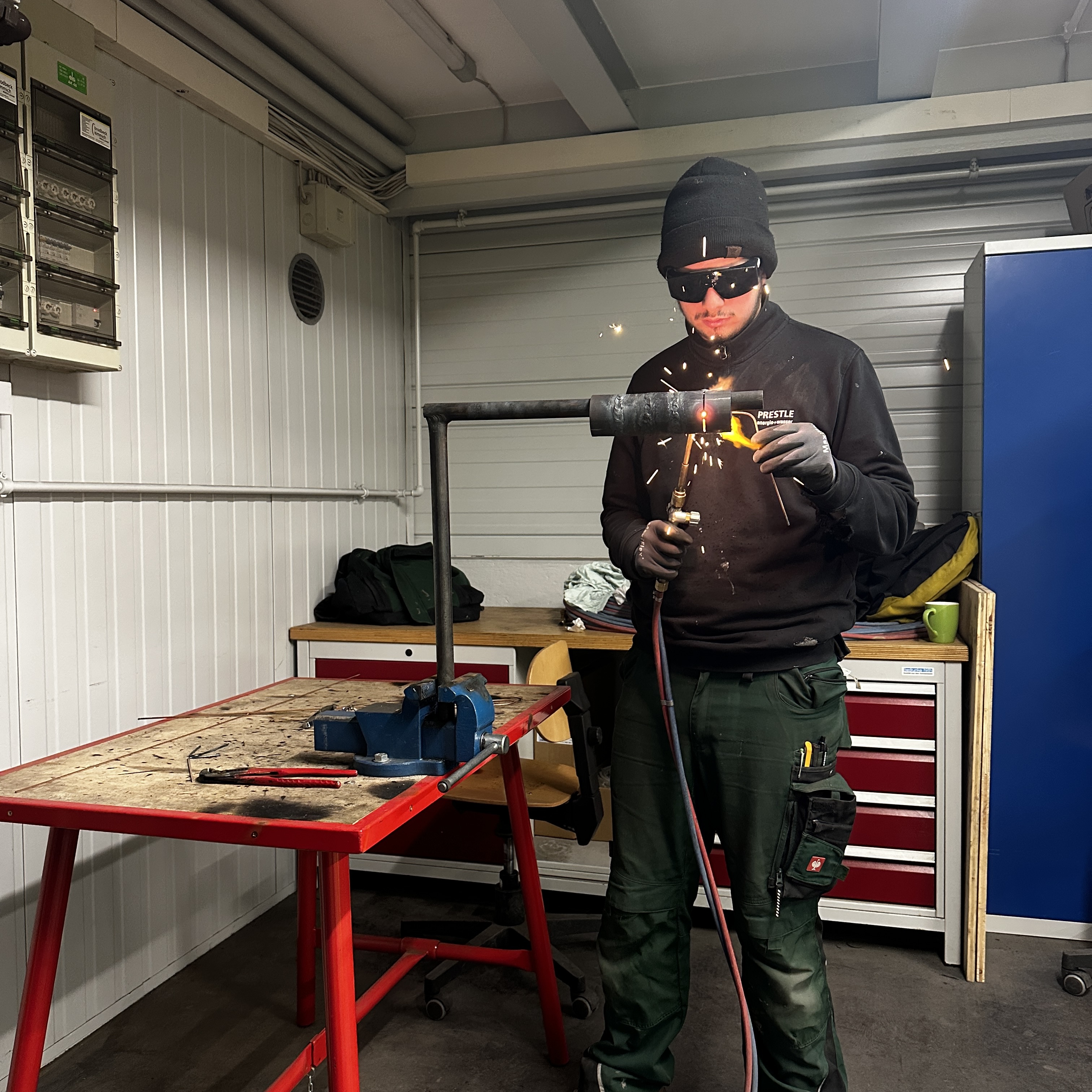 Auch die Auszubildenden Anlagenmechaniker SHK des 3. Lehrjahres nahmen vom 16. bis 20. Februar an einem internen Schweißkurs in der unternehmenseigenen Ausbildungswerkstatt von Prestle teil.