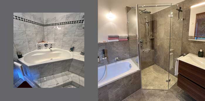 Vorher/ Nachher - Großformat Fliesen in hellem Grau