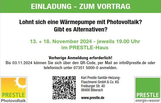 Einladung zum Vortrag Wärmepumpe / Photovoltaik