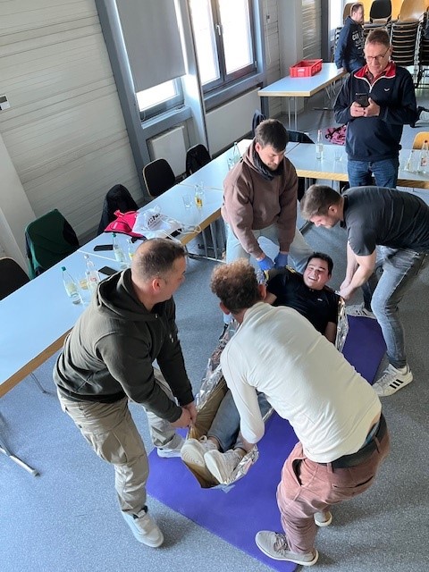 Am Kurs nehmen 68 Prestle-Kollegen teil. Frau Hempfer vom Deutschen Roten Kreuz, Kreisverband Biberach e.V. leitet den Kurs und erklärt ausführlich in der Theorie die Kursinhalte die natürlich direkt in die Praxis umgesetzt werden.
