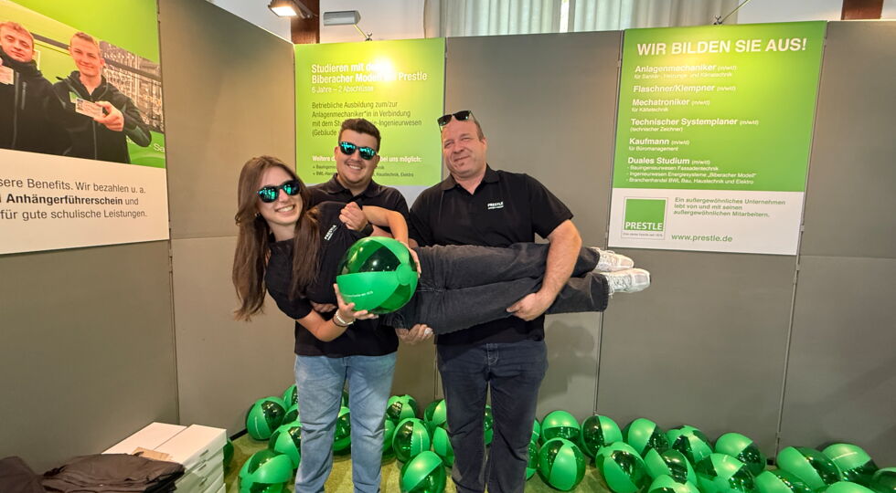 Aktiv konnten sich die jugendlichen Interessenten an unserem Messestand im Verpressen von Rohrstücken in verschiedenen Abmessungen mit den dazugehörigen Werkzeugen üben und sich dabei mit unseren Auszubildenden messen. Tollen Anklang fanden natürlich die Prestle-Sonnenbrillen und für sportliche Sommeraktivitäten die Prestle-Wasserbälle, für jedes informative Gespräch gab es diese als Giveaways!