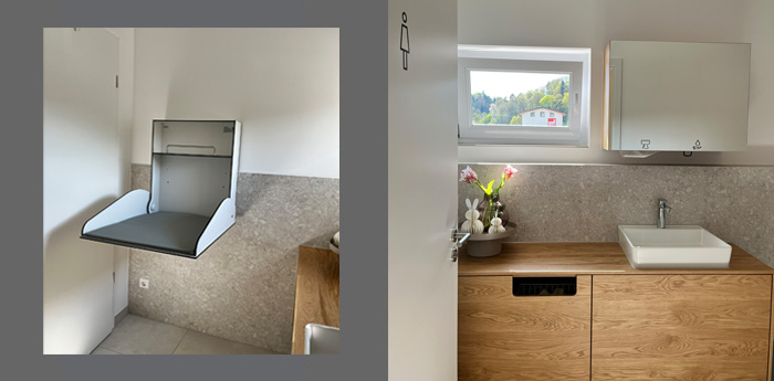 Damen WC - Waschtisch mit moderner Wickelkommode, Küchenstudio Fischbach