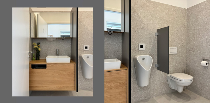 Neue Raumaufteilung der WC's für mehr Privatsphäre, Küchenstudio Fischbach -