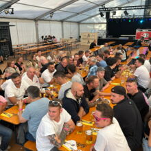 Um 18.00 Uhr war Treffpunkt für die ganze Prestle-Belegschaft diesmal aufgrund der anfänglichen Regenschauer im Innenbereich des Festzelt auf dem Gigelberg.