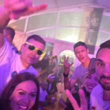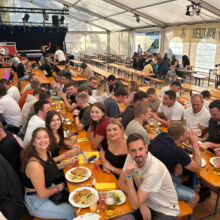 Zuerst gab es zur Stärkung eine herzhafte Mahlzeit nach Wahl mit Schoko-Früchte-Nachtisch! Dann startete der DJ im Festzelt fetzige Partymusik, bei der die ganze Belegschaft ihr Partytauglichkeit unter Beweis stellte.